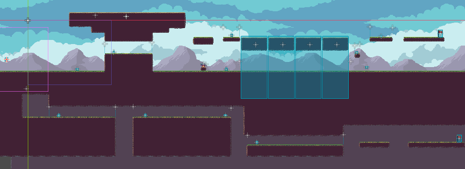 - Nivel con dos caminos definidos: Diseñamos y construimos un nuevo nivel donde, desde la entrada, el jugador puede optar por dos rutas para llegar a la meta. Una ruta requiere más precisión en saltos y planear bien el orden en el uso de habilidades, otra ruta es más exigente en la rapidez en que se eliminan enemigos y la utilización de sus habilidades, para esto se implementaron plataformas que se caen al caminar sobre ellas y otras de salto que se explicarán más adelante.