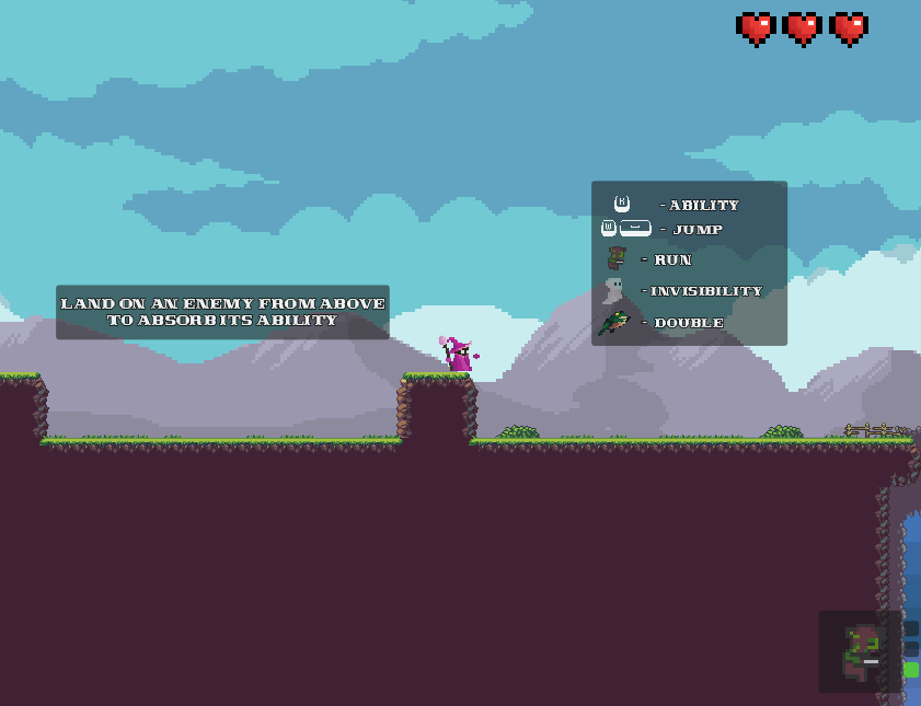 - Instrucciones estilo tutorial en Nivel 1: Añadimos mensajes dentro del primer nivel para explicar las mecánicas básica en el uso de habilidades. El tutorial está integrado en el propio nivel, en lugar de una pantalla externa, el jugador recibe instrucciones justo antes de cada mecánica clave. El objetivo es mejorar la curva de aprendizaje y evitar que el jugador se frustre por no entender qué hacer o cómo funcionan sus poderes.